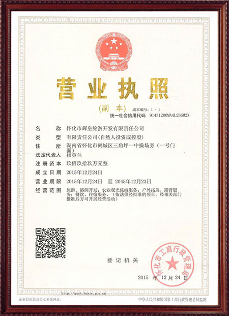 懷化市輝皇旅游開發有限責任公司成立于2015年12月,注冊資金999萬元,主要從事旅游、溶洞開發;農業觀光旅游服務;戶外拓展、露營服務;餐飲、住宿服務等。公司將生態環保理念與健康自然生活相融合,根據當地自然條件和氣候特點,不斷延伸休閑旅游度假產業,將生態保護景點(原始次森林,生態農莊,蔬菜基地)、戶外運動項目(峽谷棧道、玻璃平臺)和休閑度假文化(采摘園、度假酒店、度假別墅)等概念融入到旅游產業當中。