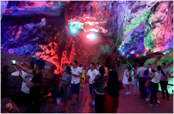 钟鼓洞的奇岩巧石、流泉飞瀑、千姿百态的石笋、石柱、石钟乳,构成了一幅幅无比瑰丽的画卷。